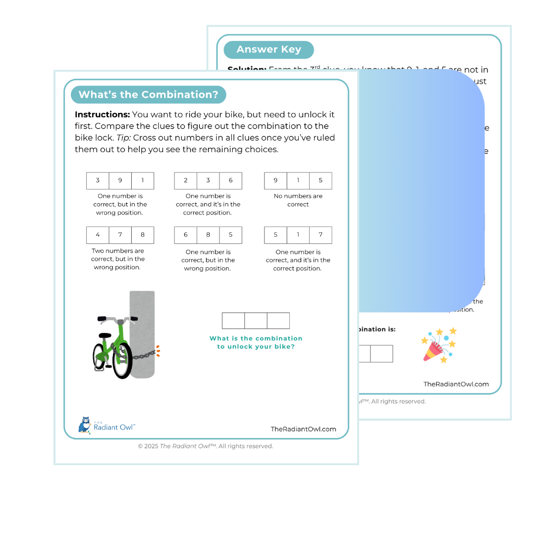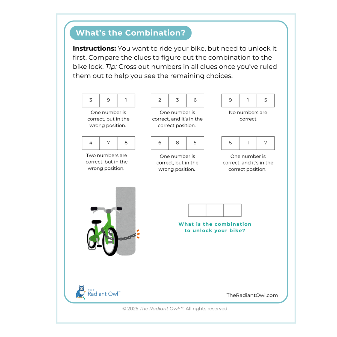 Keep minds active and spirits high with this fun printable numbers game designed especially for seniors with early-stage dementia. Players use clever word and number clues to decode the secret combination to a bike lock—an enjoyable brain workout that feels like solving a mini mystery!